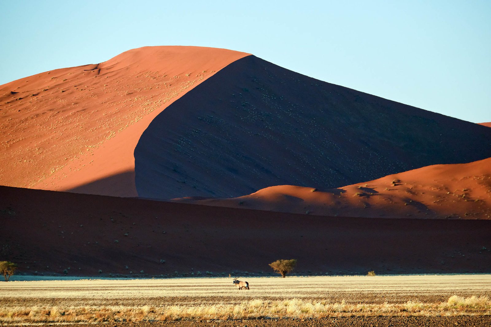 Spreading across Botswana, South Africa and Namibia, the Kalahari meaning ‘the great thirst’ is an exceptionally beautiful living desert. The landscape is characterised by a large semi-arid sandy savannah draped over a gently rolling inland sea of sand covering most of Botswana and large parts of Namibia and South Africa. It is also the last bastion of the indigenous San people with the modern world having enveloped all the other areas they once roamed. The Namibian portion is made up of red sands covered in thin, wispy, mostly golden grass and dotted with acacia trees and wide-ranging wildlife including gemsbok, impala, jackals and cheetah.